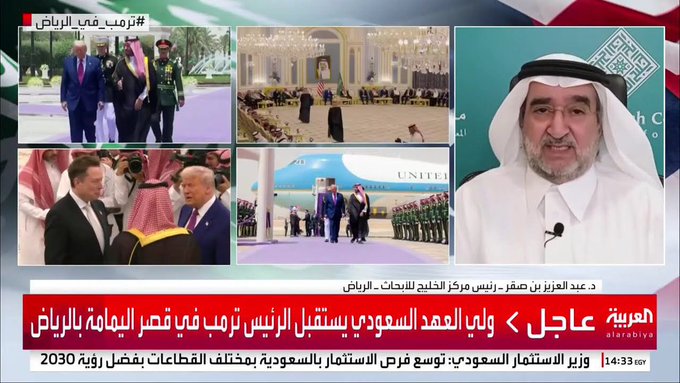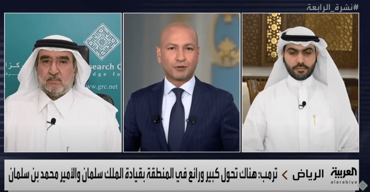 The Chairman of the Gulf Research Center (GRC), Dr. Abdulaziz Sager‏, participated in the special broadcasting of U.S. President Donald Trump’s visit to Saudi Arabia on Al Arabiya.