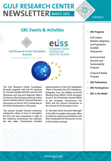 The Gulf Research Center (GRC) would like to cordially invite you to the Gulf Labour Markets, Migration, and Population (GLMM) Program and the Konrad Adenauer Foundation (KAS) Webinar, “Stepwise Migration to the Gulf States and Onwards: Highly Skilled Workers in the Global Competition for Talent ...