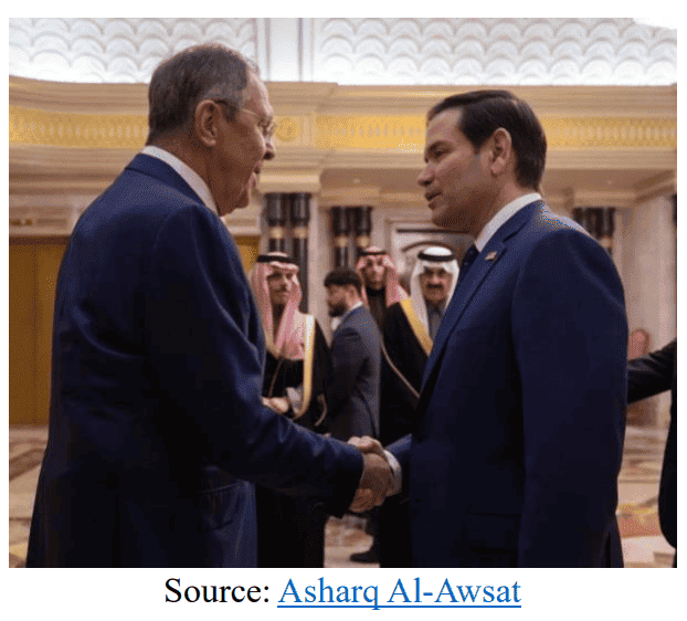 On the political side, President Trump’s first call with a foreign leader was to Saudi Arabia’s Crown Prince and Prime Minister and on his first day back in office, he stated he would go to Saudi Arabia again as his first visit to a foreign country. Then, in February 2025, Saudi Arabia hosted talks between Russia and the U.S., the first meeting between the two sides in three years. Russian Foreign Minister Sergei Lavrov and U.S. Secretary of State Marco Rubio attended the meeting in the presence of Saudi Foreign Minister H.H. Prince Faisal bin Farhan and Saudi Minister of State and National Security Advisor H.E. Musaed AlAiban.