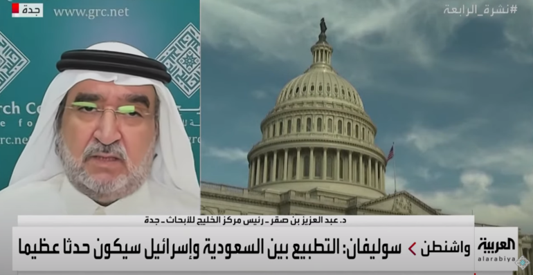The Chairman of the Gulf Research Center (GRC), Dr. Abdulaziz Sager, participated in an episode of “Fourth Bulletin” airing on Al Arabiya regarding “the outcomes of the Two-State Solution Conference held [September 22] at the United Nations headquarters in New York.”