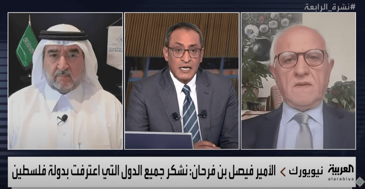 The Chairman of the Gulf Research Center (GRC), Dr. Abdulaziz Sager, participated in an episode of “Fourth Bulletin” airing on Al Arabiya regarding “the outcomes of the Two-State Solution Conference held [September 22] at the United Nations headquarters in New York.”