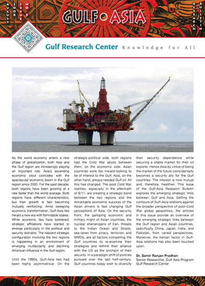 Abstract: This GCC-Asia bulletin, which is to be produced bi-annually, seeks to address the current information deficit in the area of GCC-Asia relations through analytical and incisive articles. In this issue, the emphasis is on the relationship with Japan.