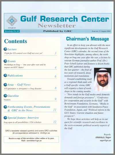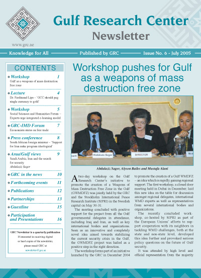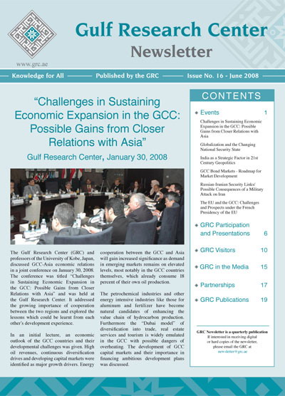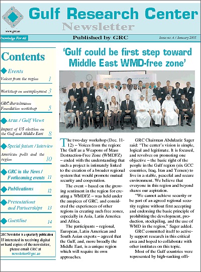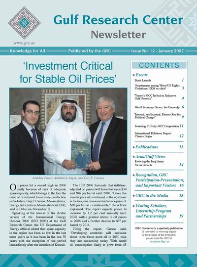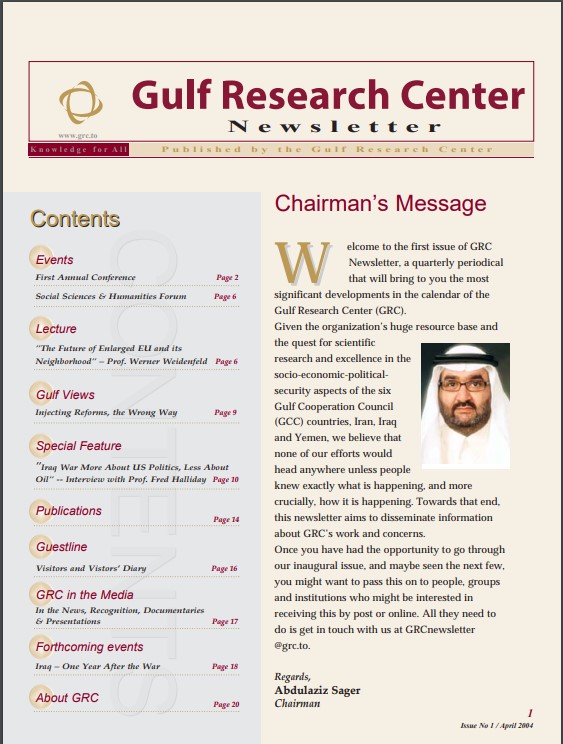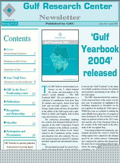 Abstract: The Gulf research Center (GRC) Newsletter is an attempt to highlight the most significant developments in the GRC calendar. The primary objective of this quarterly periodical is to let people know what the GRC is doing and, more crucially, how it is happening.
