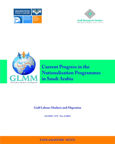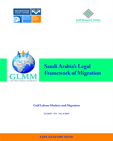 The Gulf Labour Market and Migration (GLMM) programme publishes its fourth paper: “Saudi Arabia’s Legal Framework of Migration” by Maysa Zahra. The paper gives a detailed most up-to-date overview of the legal dimension of migration to Saudi Arabia. The note offers an overview of Saudi Arabia’s regulatory framework of migration. It serves as a guide to researchers looking to navigate the system of laws and implementing regulations covering a broad range of migration-related issues from entry/exit conditions to rights, settlement, and citizenship. The GLMM programme produces an array of publications addressing all major issues in different formats. Initially, it focuses on Facts Sheets, Explanatory Notes and Conference Papers. Subsequently, it will add Research Papers, Policy Briefs, Academic Publications as well as Proceedings & Reports. GLMM is an international independent, non-partisan, non-profit joint programme of the Migration Policy Centre (MPC - Florence) and the Gulf Research Center (GRC - Jeddah, Geneva, Cambridge, Tokyo). GLMM provides data, analyses, and recommendations aiming at a better understanding and improved management of Gulf labour markets and migration, engaging with and respecting the viewpoints of all stakeholders. GLMM intends to become an indispensable tool for researchers, students, policymakers, advocates and migrants in, as well as nationals of the GCC countries