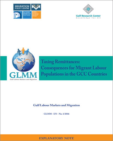 As the world’s oil and gas prices decline, taxation of foreign workers’ remittances has increasingly become a potentially viable solution to address government budget deficits in the Gulf Cooperation Council (GCC) states. With growing unemployment rates and labour shortages among local populations, the GCC governments have recently proposed legislative and, in some cases already introduced, economic measures to tax foreign workers’ remittances. Newly proposed tax measures on remittance outflows are often rationalised as critical stop-gap solutions to mitigate high government budget deficits and share costs in accessing state-subsidized public infrastructure and services. Yet, several GCC governments face a complex policy dilemma between balancing budget deficits and addressing high labour shortages and incentives in local labour markets. Thus, the key policy question is: how can GCC governments manage this emerging policy dilemma within their borders? This policy brief examines not only the recently suggested policy responses of various GCC governments but also their long-term potential implications on national labour markets and migrants and their families both in the destination and origin countries
