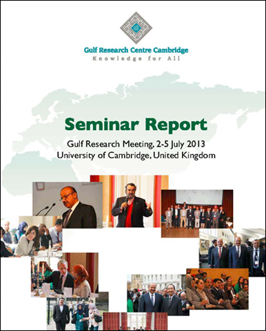 The Seminar Report for the 2012 Gulf Research Meeting (GRM) held on 11-14 July 2012 at the University of Cambridge has been released. This Seminar Report contains a complete overview of GRM 2012 including the opening ceremony and each of the workshops. GRM 2012 was the largest of the three annual Gulf Research Meetings that have been held so far, underlining the attraction of such an event for the Gulf scholarly community. With the third meeting, the GRM continued the realization of its objective to build and extend the bridge of scholarly and academic excellence, and to promote continued exchange among scholars working on this critical part of the world. With the events that continue to impact the Gulf region as well as the entire Middle East, a proper understanding of the issues continues to be urgent and absolutely necessary. GRM 2012 covered a broad spectrum of critical issues currently facing the Gulf region and consisted of 19 workshops, which brought together about 500 participants, including close to 300 paper presenters and well over 100 listening participants. There was an increased response from scholars and other interested persons from the Gulf region itself.