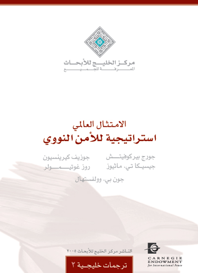 ‘Gulf Translations’ is a series that deals with the most prominent regional and international studies that address some of the important issues linked to the Gulf region. ‘Gulf Translations’ offers a number of studies that discern and analyze a wide palette of topics from an in-depth and objective perspective. The present issue of ‘Gulf Translations’ is devoted to the issue of ‘International Compliance’ (A Strategy for Nuclear Security), as the conundrum of nuclear proliferation across the world represents today an issue that causes a lot of concern among international politicians and policy-makers, most prominent of whom is the US administration . Given the critical importance of this particular issue and its close bearing on the security of the entire world, and out of concern on the part of the Gulf Research Center (GRC) to keep up with the various theses and suggestions put forward in a bid to articulate a strategy for global nuclear security, the GRC, which has launched an initiative slated to free the Gulf region of all types of weapons of mass destruction (WDS), has issued this study on international compliance. The study was prepared by a pool of well-known specialized scholars and eminent academics with wide experience and knowledge. The objective has been to translate and publish this study in order to disseminate knowledge and make it available to students and scholars interested in this specific issue so they could benefit from the insights included out of the Center’s mission statement: ‘Knowledge for All’.