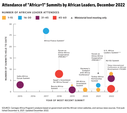 At the same time, several African economies face a risk of debt distress as a result of a challenging recovery from the coronavirus pandemic as well as the conflict in Ukraine that has strained global supply chains and energy prices. During its presidency of the G20, Saudi Arabia sought to suspend debt service payments for African countries; and on the cusp of the Summit, Finance Minister Mohammed Al-Jadaan hoped to “support Ghana and other countries” with their debt. 3 As such, the Kingdom signed deals worth over 533 million USD with several African governments, which will stimulate revenue streams and alleviate debt constraints for African economies. Although no longer chairing the G20, the Kingdom persevered in its pursuit of a permanent membership for the African Union, the G20 granted the AU a permanent membership in September 2023.