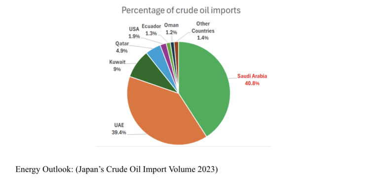 Japan's energy relationship with Saudi Arabia has been a cornerstone of the bilateral ties for several decades, with a focus primarily on oil and gas. Japan has long been one of the largest importers of crude oil from Saudi Arabia. This reliance on Saudi oil dates back to the 1960s when Japan started importing significant quantities to fuel its growing economy. Saudi Arabia, as one of the world's largest oil producers and exporters, has meanwhile been a reliable supplier to meet Japan's energy needs. More than 90% of Japan’s oil imports come from Saudi Arabia and other Gulf countries.