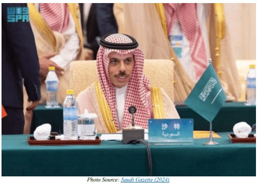 Amidst increased instability in the Middle East, the Forum addressed the critical issue of the war in Gaza. President Xi took a proactive stance, citing the US's increasingly divisive posture in maintaining its support for Israel. One of the key takeaways from the Forum in terms of Beijing's response to the Gaza crisis was President Xi calling for a peace conference and stating China’s support for a two-state solution. His opening speech also reaffirmed China’s commitment to strengthening its relations with the Arab states, positioning it as a ‘model for maintaining world peace and stability.’ His Highness Prince Faisal bin Farhan, Saudi Arabia’s Foreign Minister, reiterated the importance of an international coalition towards the crisis in Gaza and appreciated China’s position of continuous support for the initiatives to end the war in Gaza and push for the two-state solution.