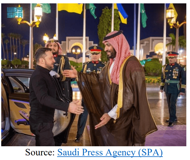 Shortly after, Saudi Arabia welcomed Ukrainian President Volodymyr Zelenskyy in Riyadh for talks on March 11, 2025. President Zelenskyy referred to the talks as a “good meeting,” writing on X that he “acknowledged the Crown Prince’s efforts in bringing true peace closer. Saudi Arabia provides a crucial platform for diplomacy, and we appreciate this.” This was followed by discussions between representatives from Washington and Kyiv regarding a peace framework to end the crisis with Ukraine agreeing to implement a 30- day ceasefire with Russia, pending Moscow’s agreement.
