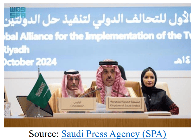 Saudi Arabia has been proactive in charting its own course. Saudi Arabia, in its role as Chair of the Arab-Islamic Ministerial Committee on Gaza - which includes Bahrain, Egypt, Jordan, Indonesia, Nigeria, Palestine, Qatar, Turkiye, the League of Arab States, the Organization of Islamic Cooperation, and with the support of European Union and Norway, spearheaded the launch of the Global Alliance for the Implementation of the Two-State Solution on the sidelines of the 79th session of the United Nations General Assembly in September 2024. The alliance—comprising key regional and international actors, represents a renewed commitment to resolving the Palestinian issue.