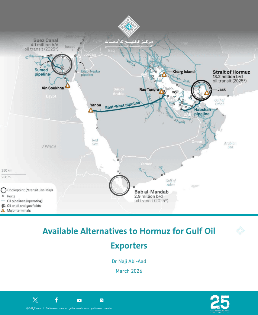 In fact, Gulf oil producers should develop and expand alternative outlets to Hormuz for their exports that are capable of being securely and quickly activated, while providing sufficient sustainable capacity to accomodate significant export volumes. Such massive efforts should be pursued at both national and regional levels, with an important coordinating role potentially played by the Gulf Cooperation Council (GCC) for the sake of all its member states, or by other regional bodies that involve all the countries in the region.