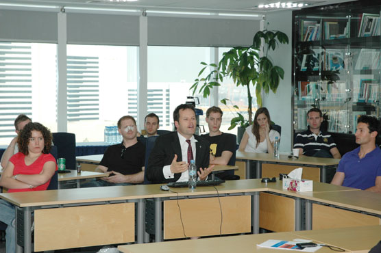 Students from the economic faculty of the Ludwig-Maximilians University in Munich, Germany visited the GRC on February 10, 2009. The students were led by Professor Franz-Joseph Busse. Dr Eckart Woertz, Program Manager of Economics briefed the group on GRCs activities and gave a lecture on the current economic developments in the Gulf. In his presentation on the "Impact of the Global Financial Crisis on the GCC Countries" he highlighted the economic and financial implications for the Gulf States and discussed with the students possible consequences for the six economies' growth models.