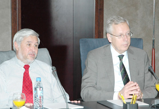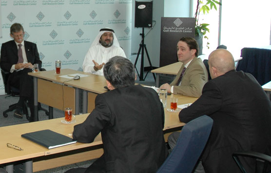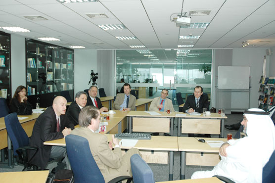 H. E. Mats Odell, Minister for Local Government & Financial Markets of the Kingdom of Sweden visited GRC on February 23, 2009. He headed a high ranking delegation of Swedish bankers and they were briefed by Dr. Eckart Woertz, Program Manager Economics at GRC about the Impact of the Global Financial Crisis in the Gulf Region