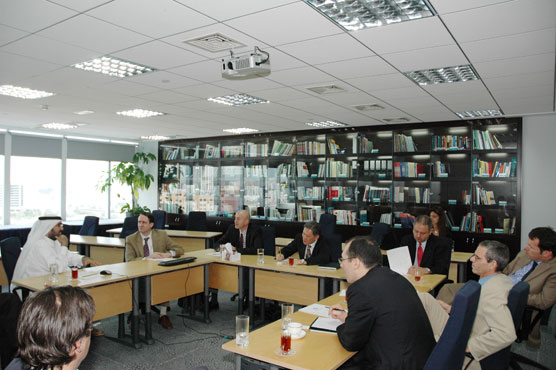 A group of seven professors and administrators from INSEAD, one of the world’s largest graduate business schools visited GRC. The GRC Chairman briefed the visitors on the work of GRC and the business education and research landscape in the Gulf region was discussed together with relevant economic issues. Future cooperation between GRC and INSEAD in the area of business-related research and education was also addressed.