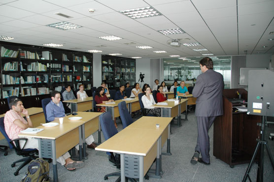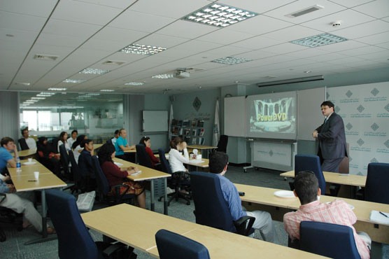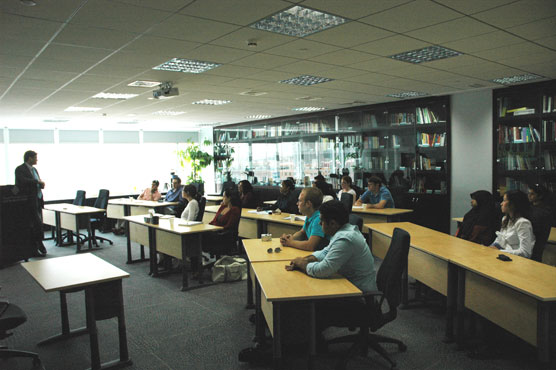 A group of graduate-level students mostly from the American University in Washington D.C. and currently participating in a seminar at the American University of Sharjah (AUS), visited the GRC. They were briefed on GRC’s activities as well as the political and security developments in the Gulf. The students were led by Prof. Isa Blumi, Assistant Professor of History at Georgia State University and a visiting Professor of International Studies at AUSh.