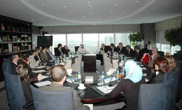 On a panel with Dr. Günther Beckstein, the Bavarian Minister-President, Emilia Müller, Bavarian Minister of Economy and Dr. Peter Göpfrich, Official Delegate of the German Commerce and Industry in Dubai, Dr. Eckart Woertz, Program Manager Economics at GRC briefed a delegation of German business people from the German state of Bavaria and Dubai about contemporary economic issues in the Gulf on March 19, 2008 in Dubai.