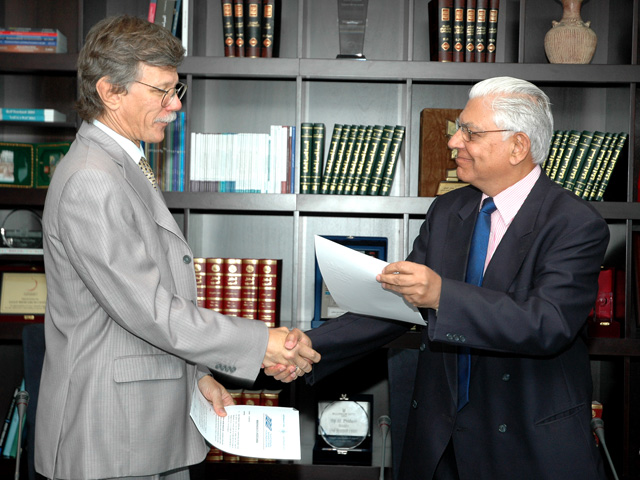 Rear Admiral Ravi Vohra (Retd.), Director of the National Maritime Foundation in New Delhi, and Dr. S.N. Pattanayak, Research Fellow, signed a MoU and held talks on the two institutes working together to explore ways of enhancing maritime cooperation among the Indian Ocean littoral states.