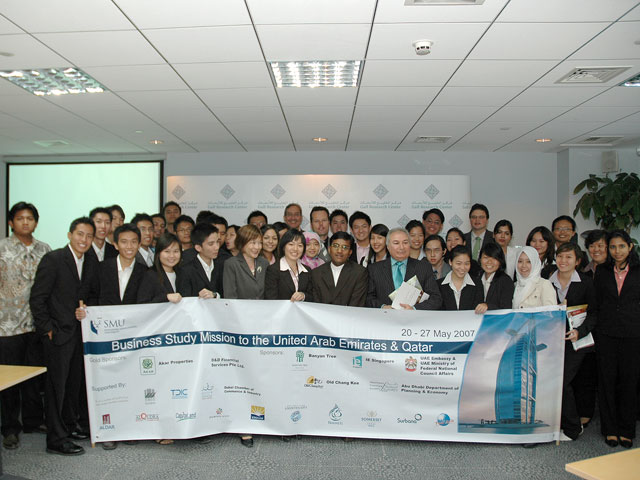 2. A group of 35 students and two faculty members from the School of Social Sciences division of the Singapore Management University, who were on a tour of the UAE and Qatar as part of a Business Study Mission, were briefed about the political, economic and security dimensions of the Gulf region.