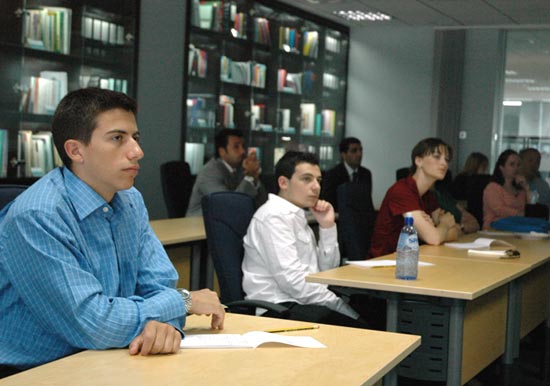 A group of 10 students from the American University in Washington, DC, accompanied by Dr. Isa Blumi of Georgia State University, were briefed about the current regional issues.
