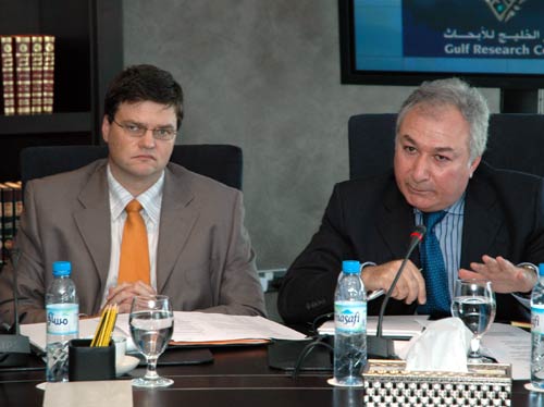A delegation from the European Parliament responsible for relations with the Gulf States, including Yemen, was briefed by the GRC research team. The delegation was led by Bernard Savage, Head of the EU Delegation Office in Riyadh, and Lilli Gruber from Italy, Chair of the Committee in the Parliament. Other members included Tobias Pluger of Germany and Vice-Chairman of the committee; Ms. Roberta Anastase and Mr. Eugen Mihăescu from Romania; and Mr. Patrick Louis of France.