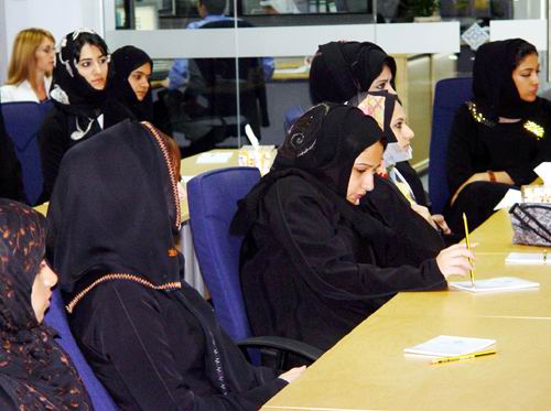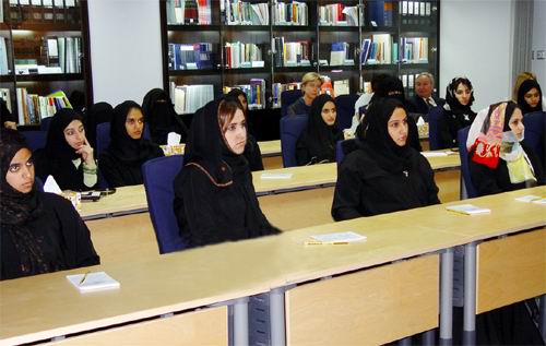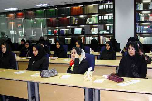 1-A group of 30 women students from Zayed University visited the GRC, accompanied by three faculty members – Dr. Kenneth Wilson, Marielle Patronis and Evelyn Seika. The foundation level students were introduced to the center’s research programs, including the women's issues, GCC economics, GCC-EU relations and Security and Terrorism portals, as well the Gulf in the Media sites. The visit was organized as part of the GRC’s efforts to inculcate the spirit of research and higher education among the youth, as well as educate them about the new techniques that are becoming available in the educational sector in the region, especially via the Web media.